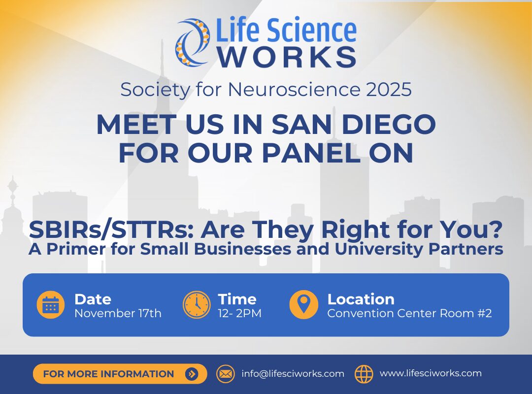 Over 20,000 neuroscientists join this annual conference to discuss leading edge technologies, basic science discoveries, and therapeutic interventions on the drawing board. LSW will host a panel “SBIRs/STTRs: Are They Right for You? A Primer for Small Businesses and University Partners” at the conference, November 17, details below. Our speakers are: